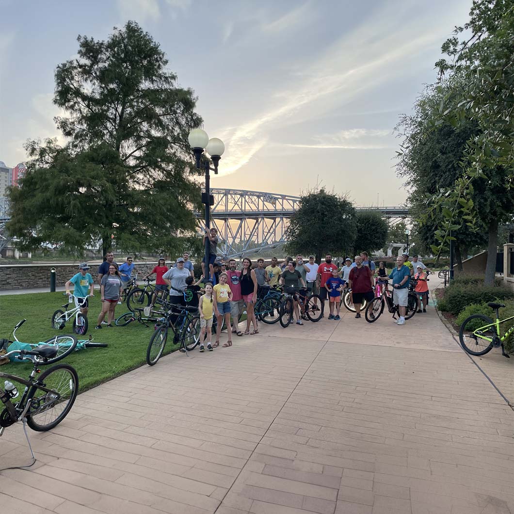 Every Thursday at 7pm come enjoy a bike ride with friends in beautiful downtown Bossier City at the east bank district.